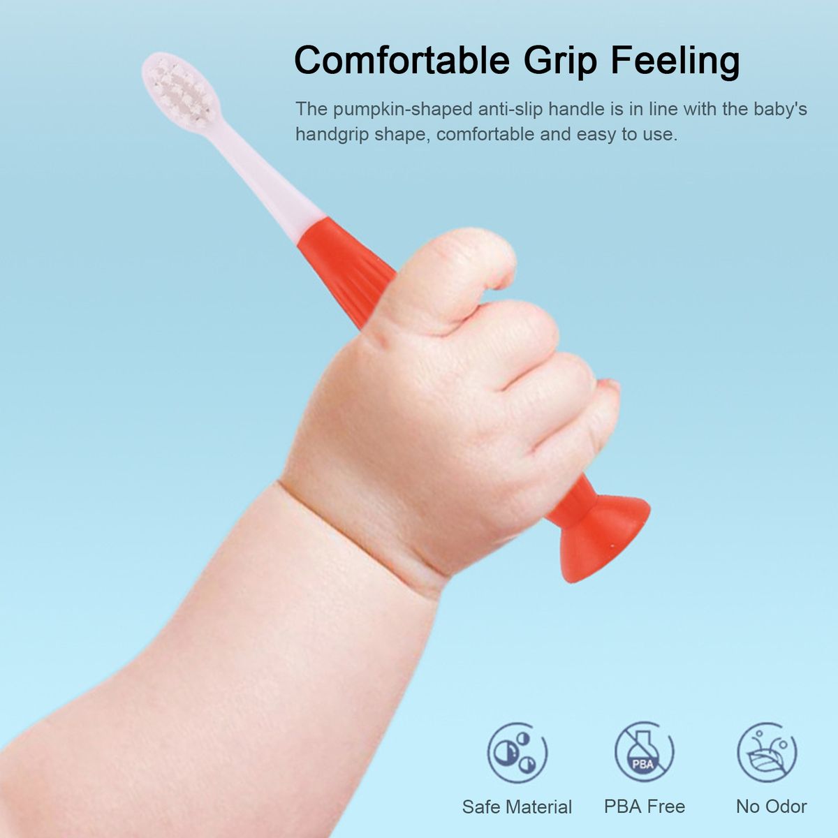 The pumpkin-shaped anti-slip handle is in line with the baby\'s handgrip shape, comfortable and easy to use.