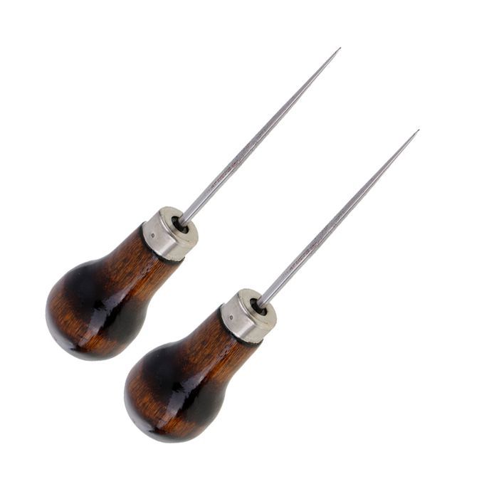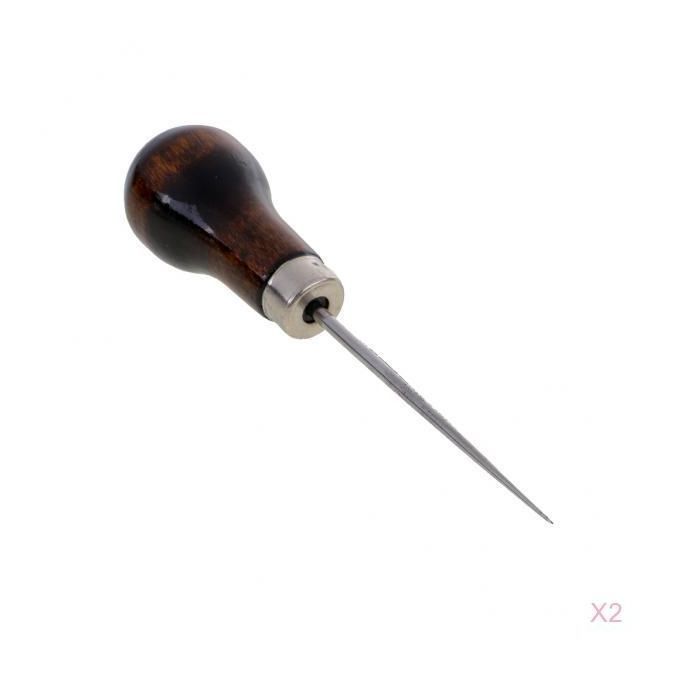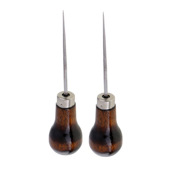 2Pcs Wood Handle Leather Craft Awl Sewing Punching Hole Pin Stitching Tool