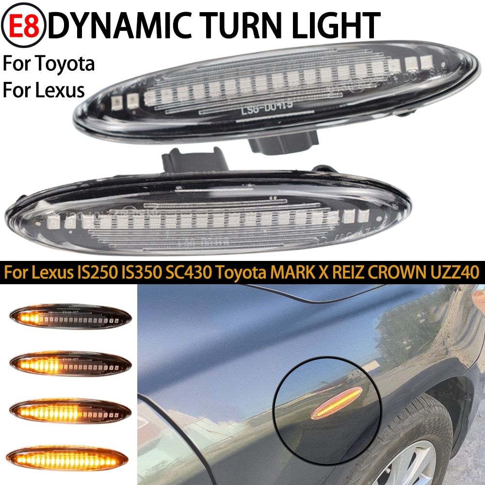 2PCS Led Dynamic Side Marker Turn Signal Light For Lexus IS250 IS350 SC430 Toyota MARK X REIZ CROWN UZZ40 Highlander Camry ACV40