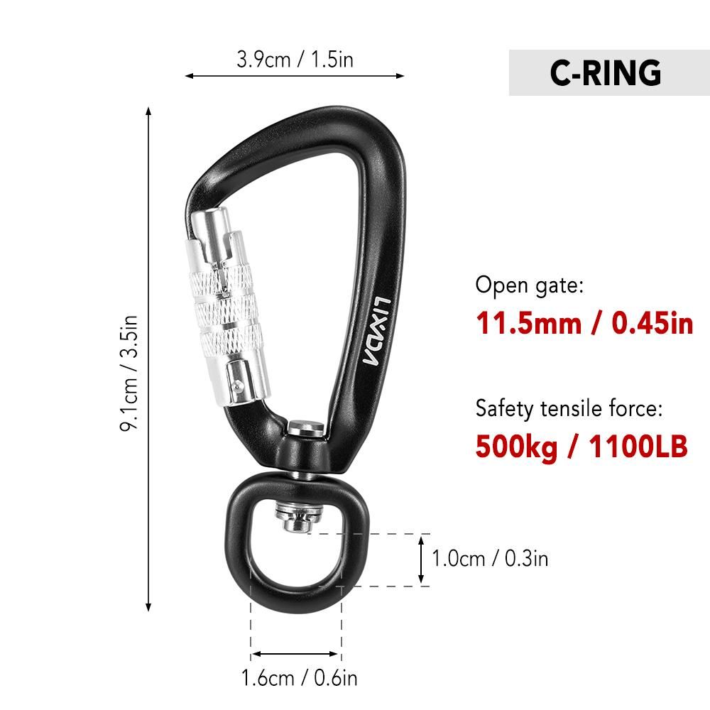 Auto locking carabiner and ring connected with a metal axle, smooth and frictionless, 306° rotatable to prevent twist of the rope of the?hammock or the pet leash.Feature:1100lb breaking capacity.360° free rotation to prevent twist of the hammock rope or pet leash.Superior aluminum constructed.Super lightweight and small size for convenient operation.Reliable to be a hammock clip, pet leash connection, hanging ring on backpack and sports bottle attachment.Specification:Material: Aluminum 7075Color: Black-D / Gold-D / Black-C / Rose-C(optional)Breaking capacity: 500kg / 1100LBOpen gate: 11.5mm / 0.45inWeight: 24g / 0.8ozLength: 8.6-9.1cm / 3.3-3.5inWidth: 3.9cm / 1.5inPackage weight: 26g / 0.9ozPackage list:1 * Swivel Carabiner