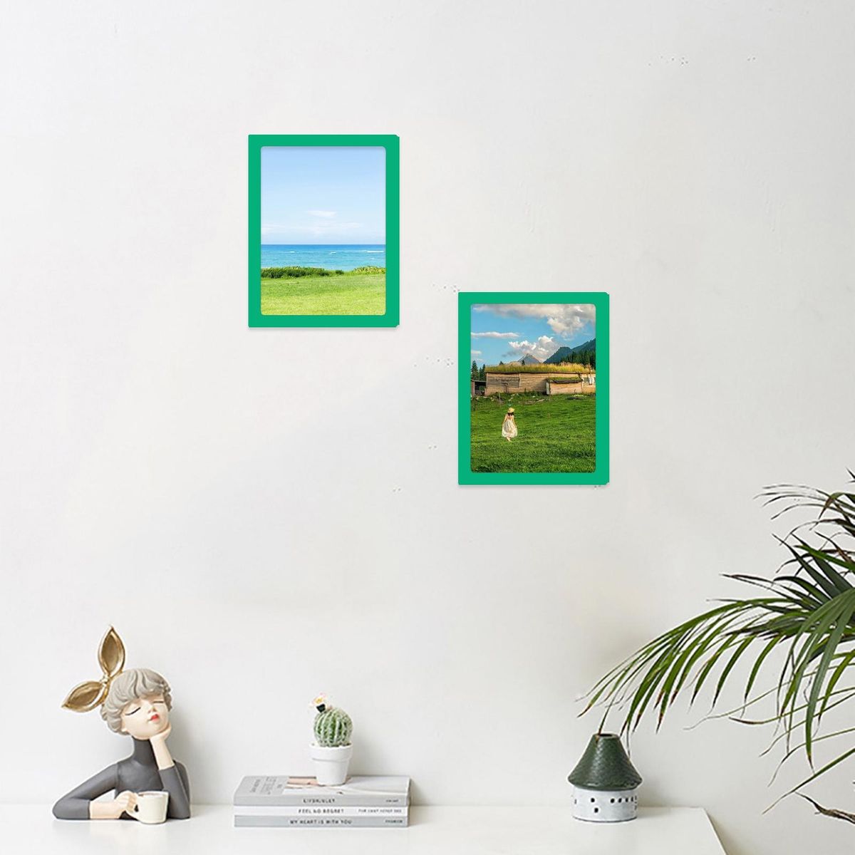 Photo frame adopts magnetic design, which is convenient to install, and can be pasted without punching holes. It is suitable for ceramic tile walls, refrigerators, metal surfaces and so on.