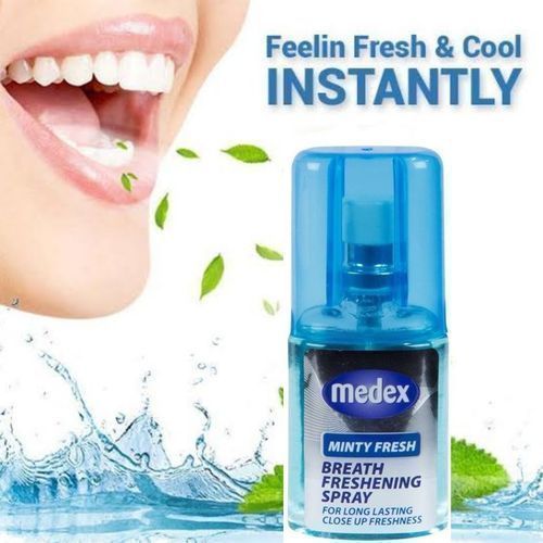 Medex Breath Freshening Spray- Minty Fresh is a pocket size mouth spray for a long lasting fresh breath. Instant acting & longer lasting * Anti-Bacterial Formula * Stay fresh all day Medex minty breath freshening spray with anti-bacteria. Perfect for mouth odors.