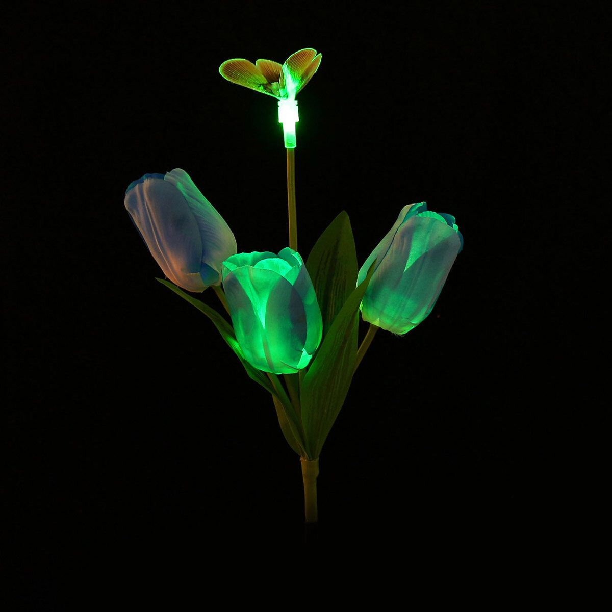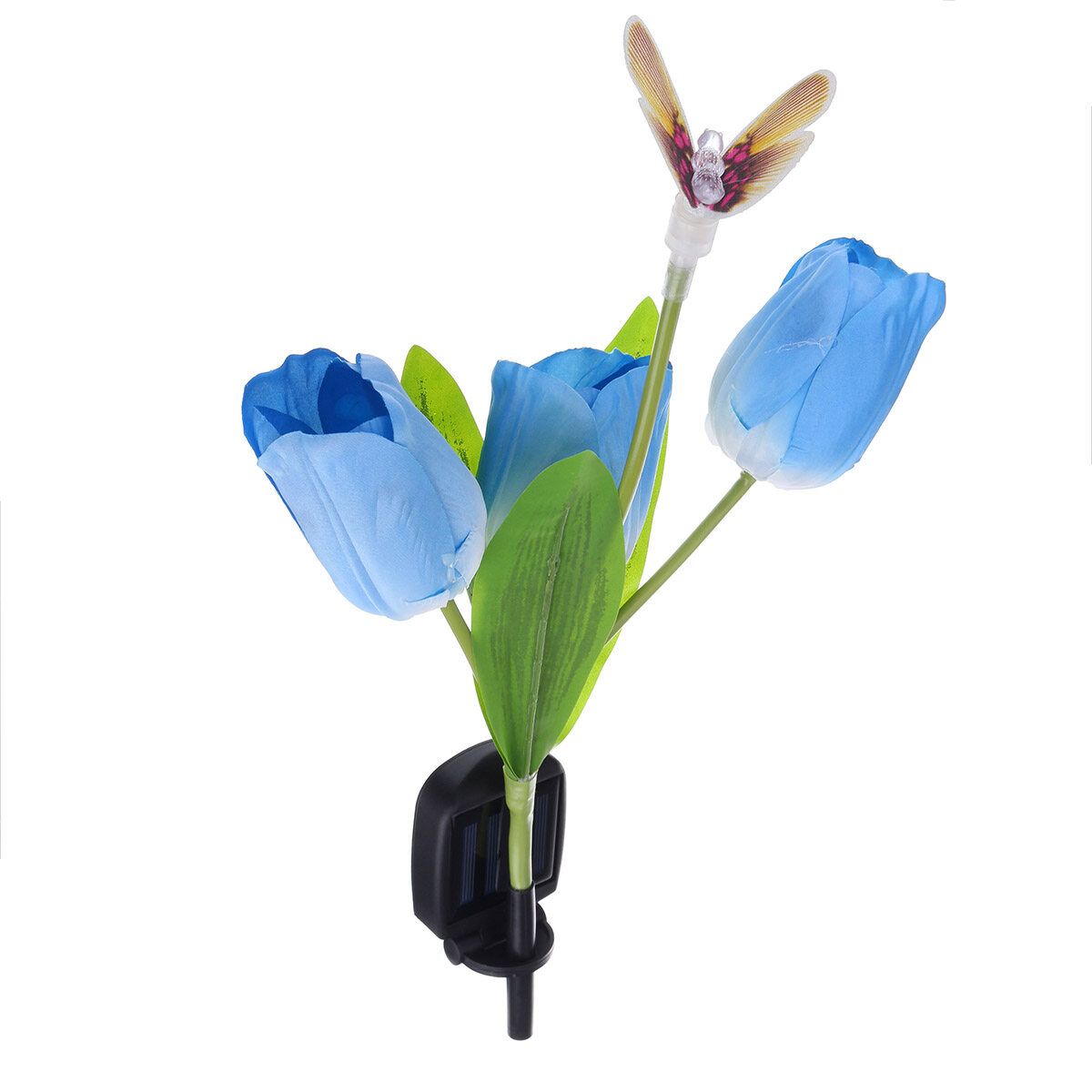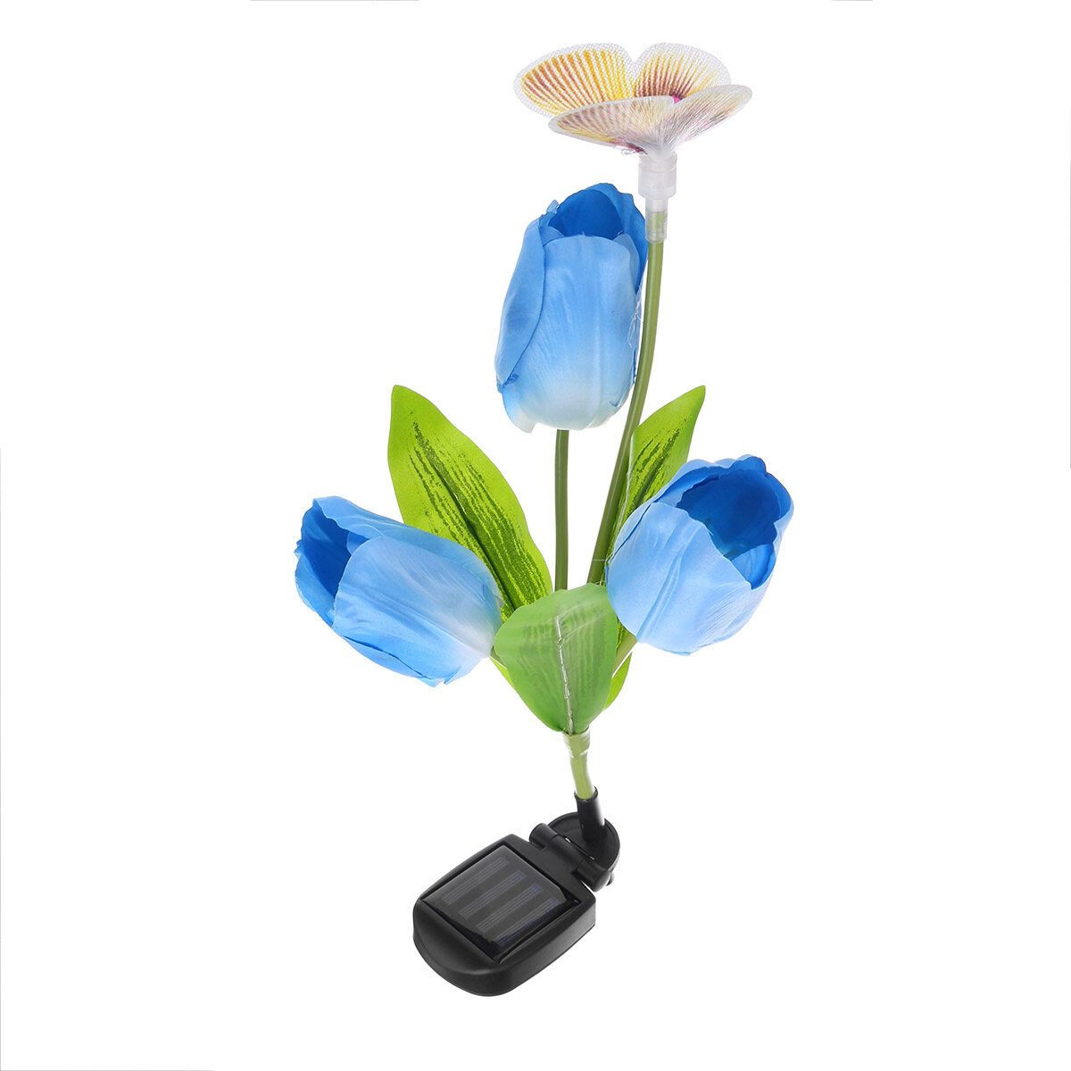 Features:- Changing Solar Garden Light: Flower stake light with -changing. The solar lights automatically lights up in the dark to illuminate your garden and pathway. Perfect as path lights and in-ground lights Suitable for the Garden, Trees, Flowers,Flowerbed, Fence, Walkway, this garden solar lights Does it all.- Adjustable Stems Leaves: Both stems and leaves are propped up by iron wire which gives ultra flexibility and durability. You can bend the solar flowers stems and leaves into different angel and style,and the flower lights will stay in shape even after thousand times of bending.Flowers and leaves will not fade easily even after exposed to the sun.- Enjoy The Beauty: This beautiful Solar flower lights flower garden stake light is at home outside. Let it decorate your garden during the day, convert sunlight into electricity, and when night falls, it will automatically light up to illuminate your garden and pathway.