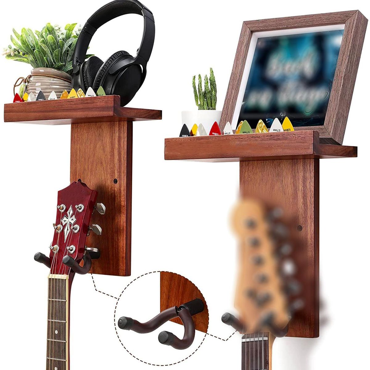 Buy 2pcs Multifunction Wall Guitar Hanger DIY Kit Mahogany Wooden Wall Mounted Hanger Shelf Pick Holder Screw Fixed for Acoustic Classic Electric Guitars Bass Ukulele Household Ornaments in Nigeria