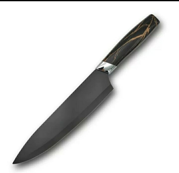 This 8- inch chef's knife is a versatile tool for cutting, chopping, dicing, mincing and moreHigh carbon stainless steel blade with a satin finish that is stain, rust and pit resistantForged stainless steel construction with a full tang, 8” blade and three rivetsSemi bolster design adds weight and balance while also ensuring full blade access when chopping or sharpeningProduct dimensions: 13.28” x 1.85” x 0.87” inches (LxWxH)Hand wash onlyQUALITY MANUFACTURING: Fabricated from high quality German stainless steel. Handle length - 4.72 inch. Product assembled in Spain. Blade sourced from GermanyVERY DURABLE: Fully forged construction offers durability and a seamless transition from blade to handlePRECISE CUTTING: Professional, satin finished blade boasts Precision cutting and is finely honed for long lasting sharpnessBALANCED BLADE: Ergonomic, traditional triple rivet handle gives balance and comfortMULTIPURPOSE KNIFE: Large sized 8-inch multipurpose chef's knife for chopping, mincing, slicing and dicing.PROTECTIVE BOLSTER: Full bolster provides weight and ensures safety