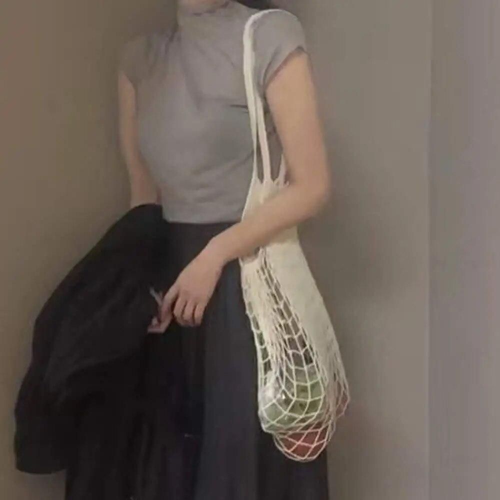 Buy 2Pcs Portable Reusable Mesh Cotton Net String Bag Organizer Shopping Tote Handbag Fruit Storage Shopper NEW (black,beige) in Nigeria