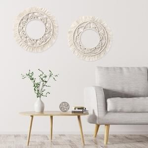 2pcs Round Cotton Rope Tapestry Ivory Handmade Exquisite Bohemian Macrame For Home Wall Corridor Decoration-Decorative Tapestries