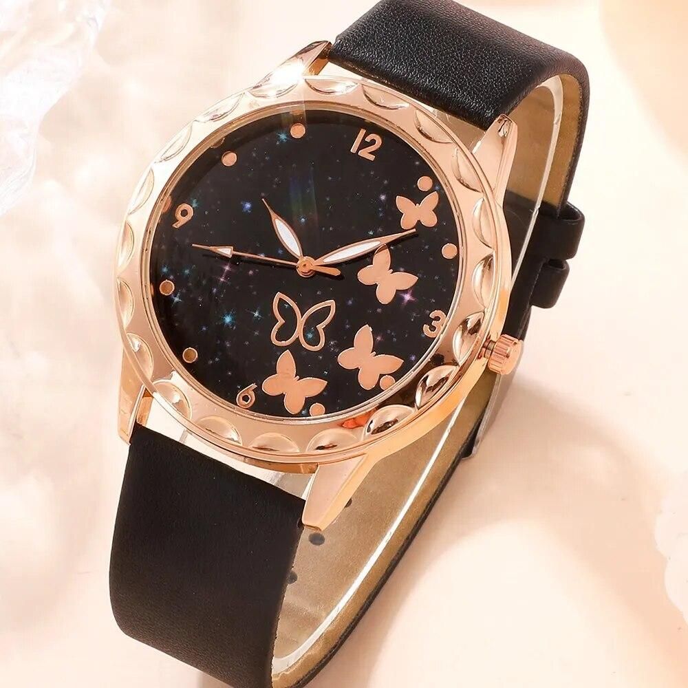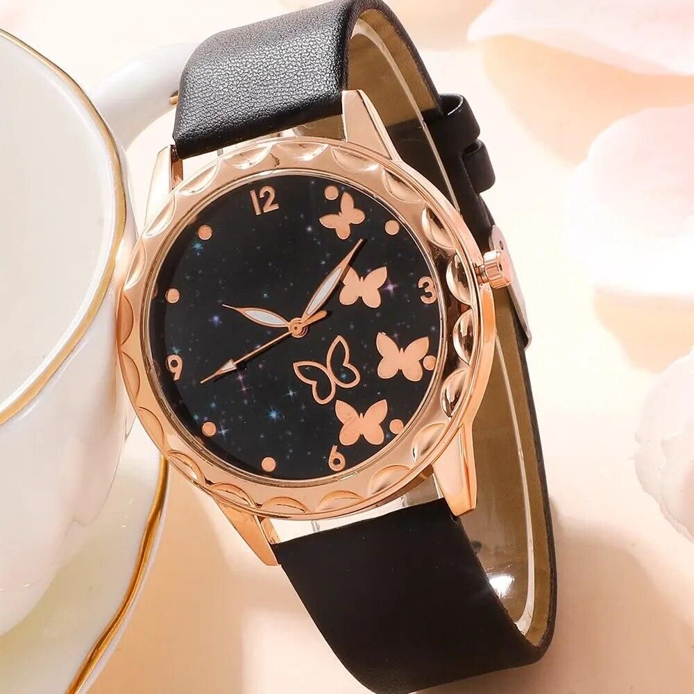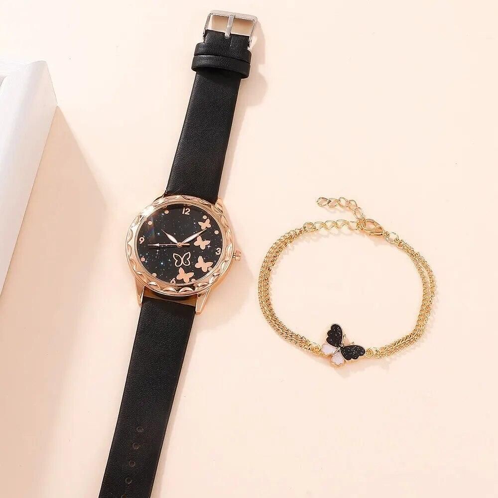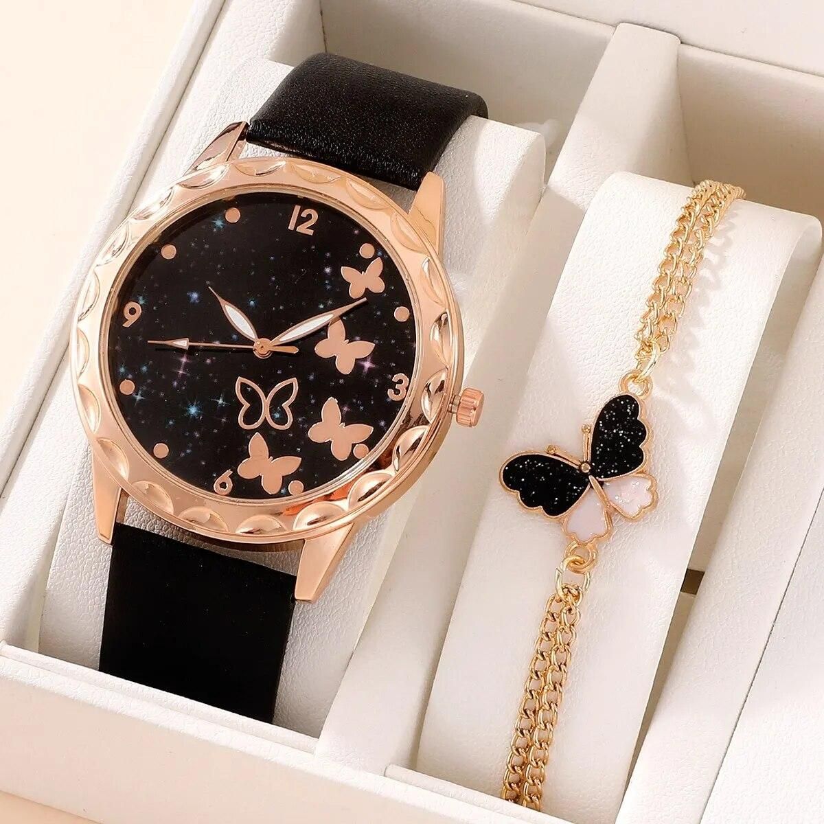 Buy 2pcs Set Watch Women Fashion Starry Sky Butterfly Quartz Wristwatches Leather Belt Ladies Watches Reloj Mujer in Nigeria