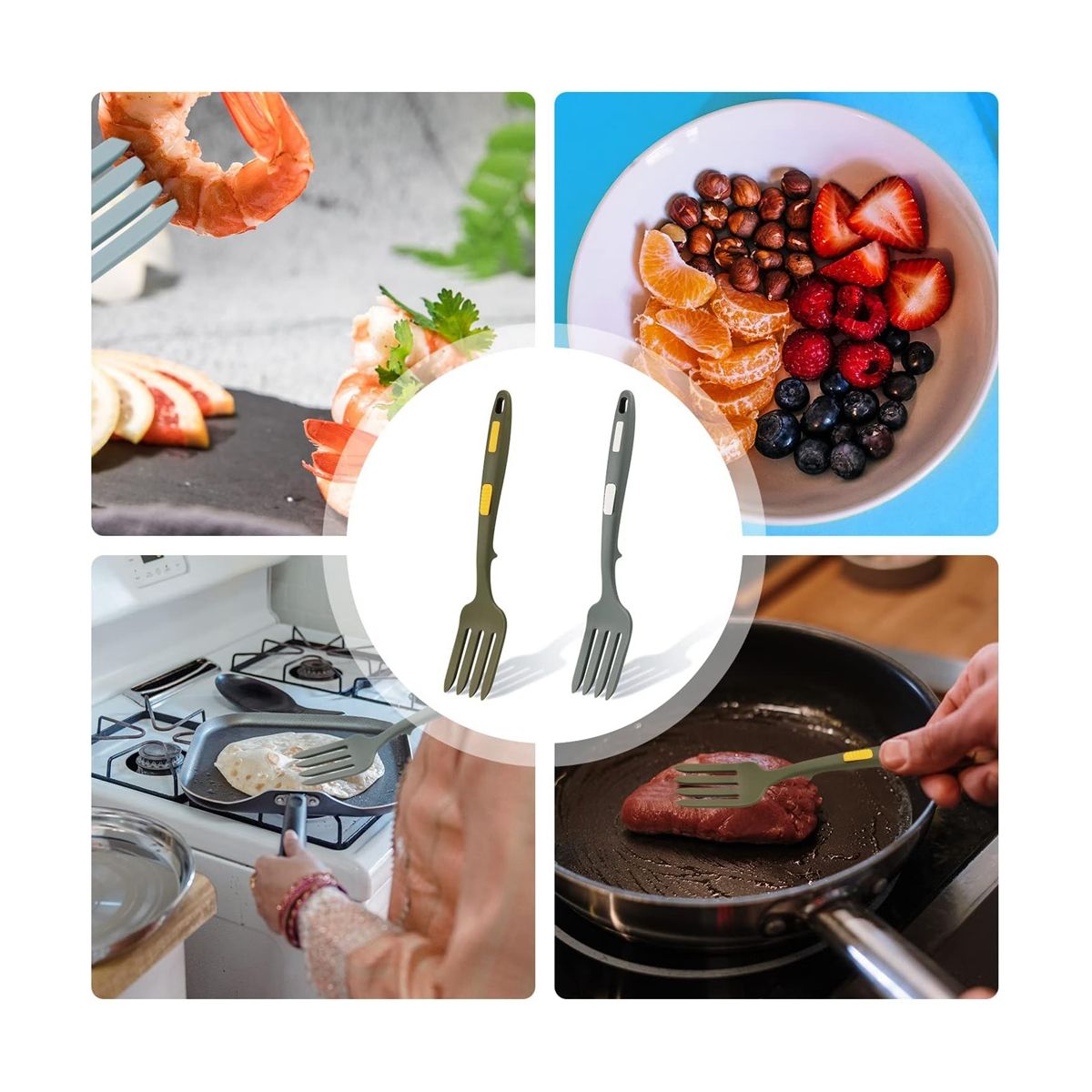The versatile silicone fork can be used for stirring mashing straining egg mixing and serving dishes cooking baking and more