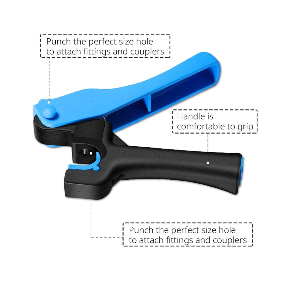 EASY TO USE: The accessory insertion tool is designed for your convenience; hold the handle of the drip irrigation tube and clamp the tube, press lightly until the tube is pierced; the hole to ensure the insertion of connectors, accessories and emitter for a tighter fit