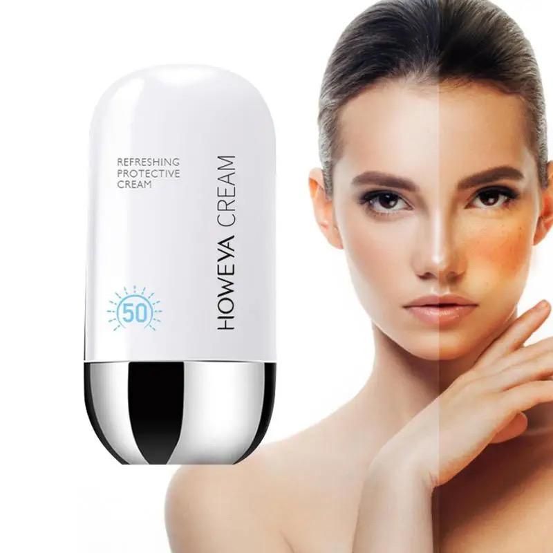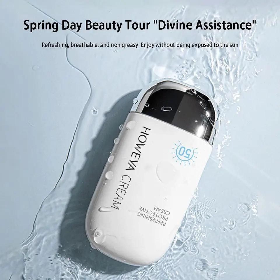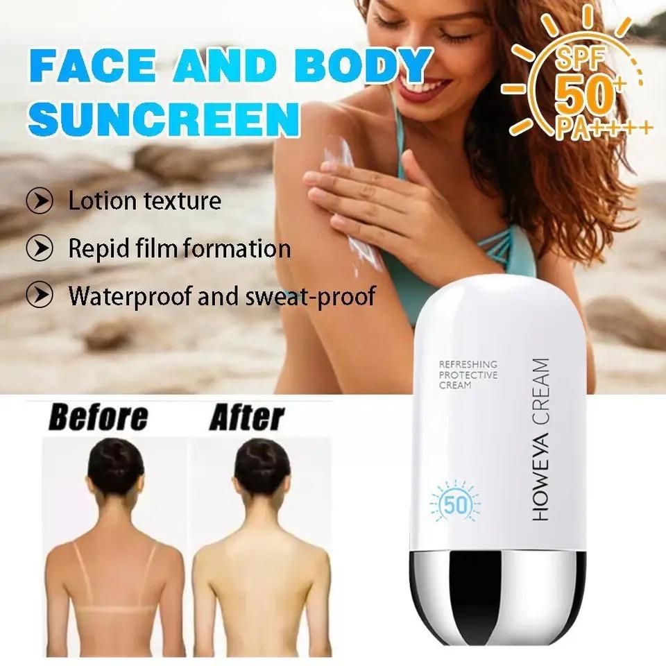 Howeya Cream SPF 50+ PA++++ is the perfect way to protect skin from sun's pesky skin-damaging rays while hydrating and keeping it soft and nourished at the same time. Powered with hyaluronic acid, royal jelly and other moisturizing ingredients, this colorless and watery essence is what all you need to leave your skin radiant, protected and ready for anything. It melts into the skin to deliver a shot of long-lasting hydration in one easy swipe and to bring dull, dehydrated skin back from the brink. This supercharged essence also doubles as a sunscreen that gives your skin superior SPF 50+ and PA +++ protection from sun damage.