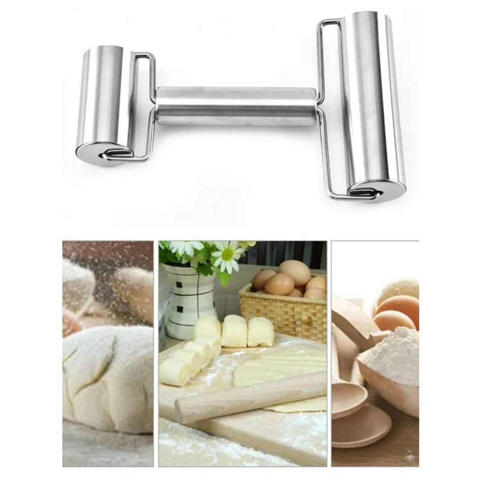 2Pcs Stainless Steel Rolling Pin for Baking DoughTwo rollers - There are two pieces of pastry rollers in the shape of T and H. The H roller is designed for adults, fit for making pizza, cakes, bread, etc. The T roller is appropriate for children, which can offer them a unique experience of cooking, the heavy stainless steel presses dough effortlessly without sticking, and the strudy screws help solidify the bodys;
