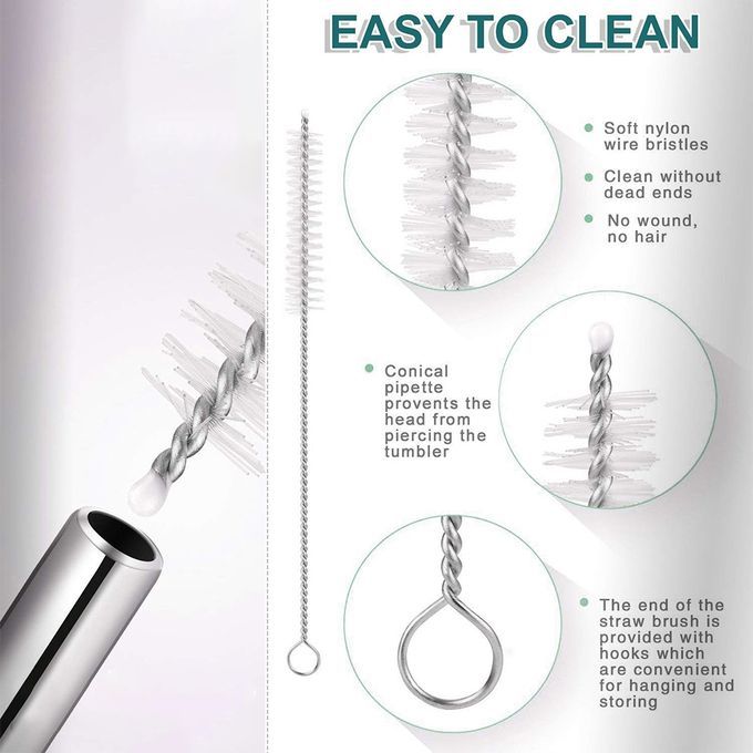 Easy to clean with the included cleaning brush. The extra-long brush helps to clean the straw thoroughly, leaving no chance for bacteria to grow. Dishwasher safe.