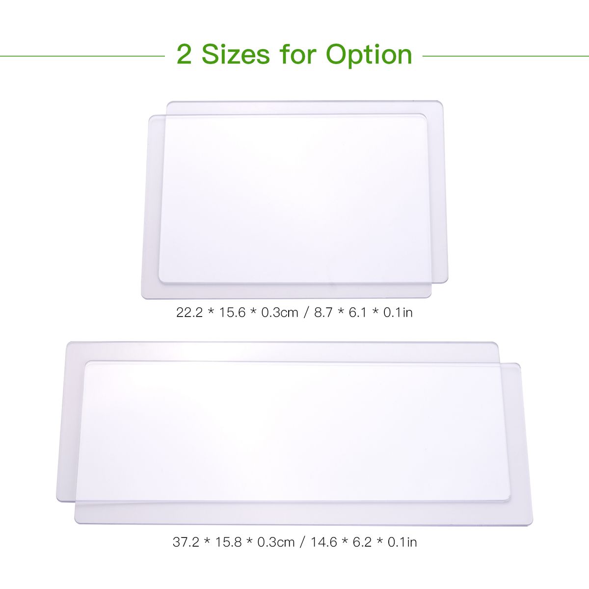 2 sizes for option- 8.7 * 6.1 * 0.1in/ 14.6 * 6.2 * 0.1in.