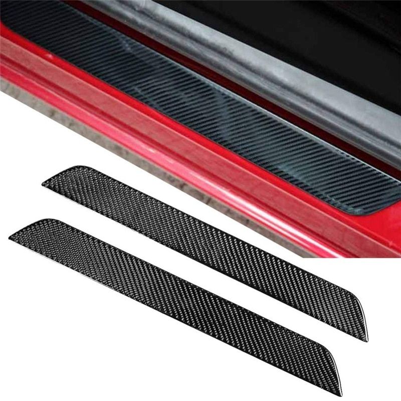 1X 2PCS Universal Auto Threshold Cover Panel Carbon Fiber Step Protective Decorative Sticker Guard S/M/L Car Door Sill Scuff Plates