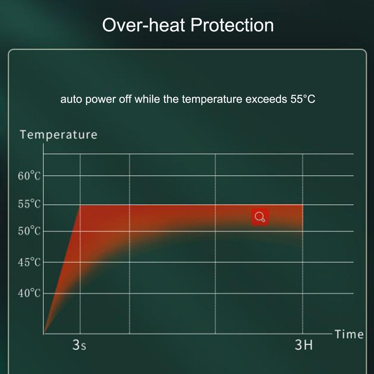 Over-heat protection, fast heating, auto power off while it exceeds 55℃, ensuring your safety as well as keep you warm.