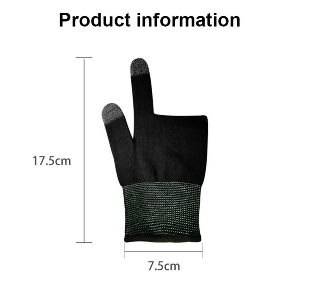 2PCS=1Pair Mobile Gaming Gloves For Gamer Sweatproof Anti-slip Touch Screen Game Finger Sleeve Breathable Mobile Gaming GlovesDescription:Product Name: Game Finger GlovesProcessing method: knittingFunction: touch screenStyle: split-finger glovesProduct size: 15*16*1cmProduct weight: 13gSpecifications:【Anti Slip】 :Touch Screen Gloves Men Women Breathable Sweatproof Knit Thermal Gloves for Gaming Biking CyclingSensitive touch, integrated knit, elastic fit,Constant comfortable friction, stable and accurate finger movement.【Comfortable to Wear】:Warm and breathable, sweat-proof and anti-slip;Skin-friendly and comfortable to wear.【Light and thin】:Nano fiber, lightweight, thin, fine, strong and powerful.【High sensitivity】:Clear and continuous touch screen response.【High air permeability】:the contact surface between fingers and air is increased by 50%, the evaporation area is increased, and sweat can be easily discharged no matter how much.【Size】:Suitable for different finger circumference, comfortable fit and not tight, Hot fuse edging.Package Included:1*a pair of gloves2PCS=1Pair Mobile Gaming Gloves For Gamer Sweatproof Anti-slip Touch Screen Game Finger Sleeve Breathable Mobile Gaming Gloves
