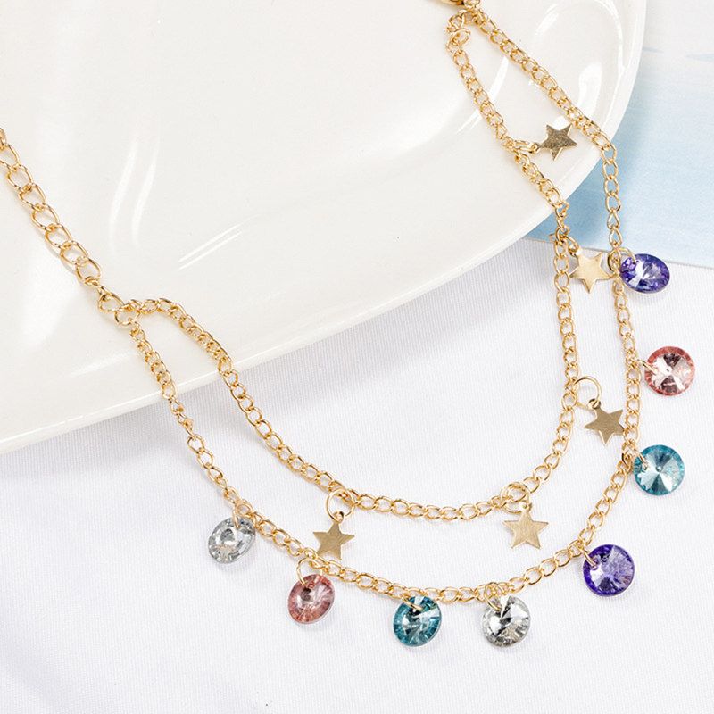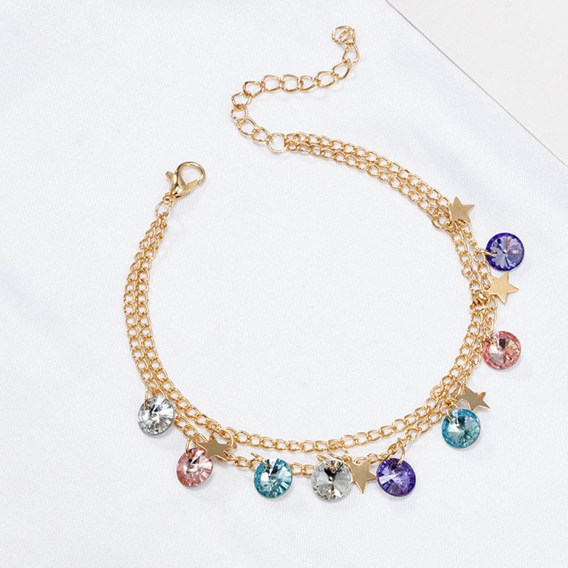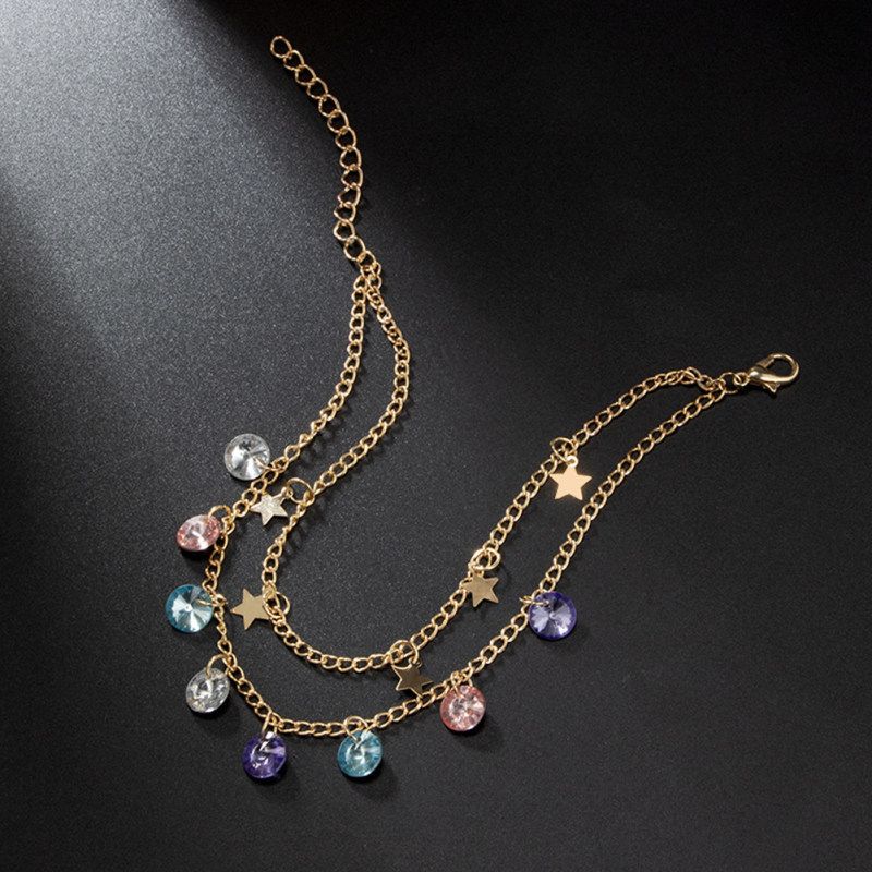 This anklet features star and colorful rhinestone charm, looks stylish.