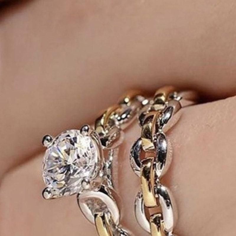 Wedding rings adopt two-tone chain and shining rhinestone design, which is unique and stylish, and bring trendy outlook to you.