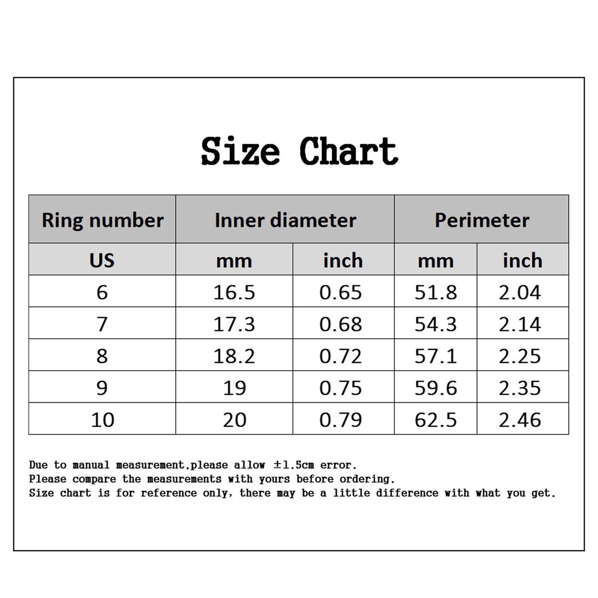 US Size 6(Dia), Inner Diameter: 1.65cm/0.65", Perimeter: 5.19cm/2.04" (Approx.)