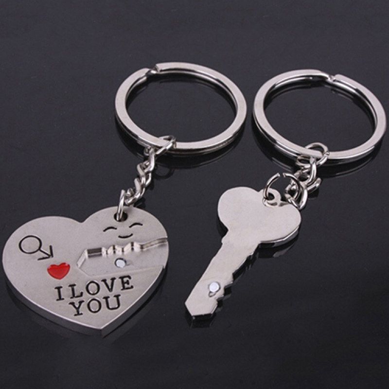Love heart key shape 2 pcs keychain, exquisite workmanship.