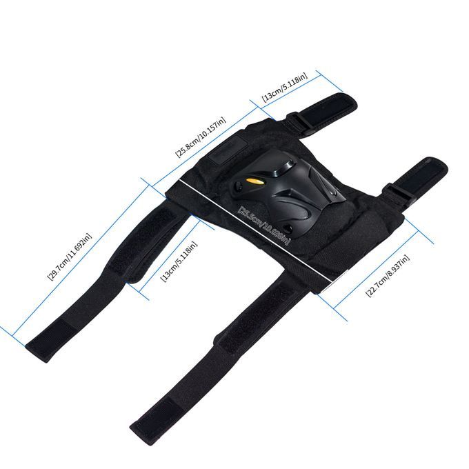 The upper width of this knee pad is 25.8cm, the lower width is 22.7cm, and the height is 25.5cm. The length of the long strap is 29.7cm, and the length of the short strap is 13cm.
