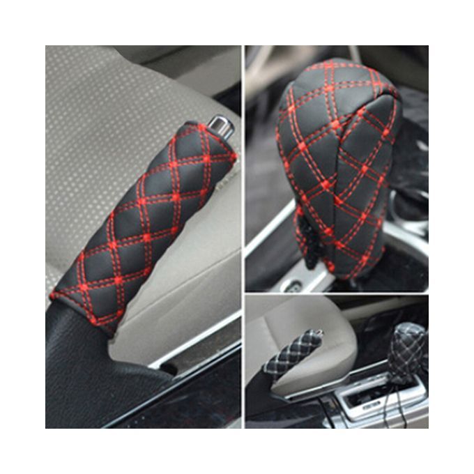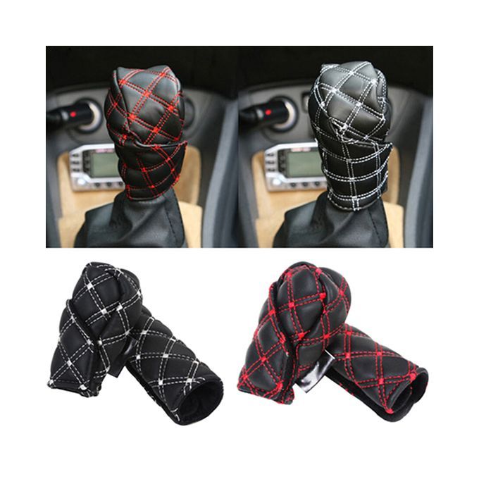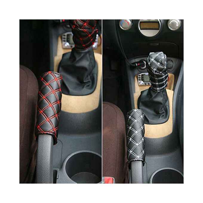 Buy 2Pcs/Set Faux Leather Hand Brake Shift Knob Cover Gear-Red in Nigeria