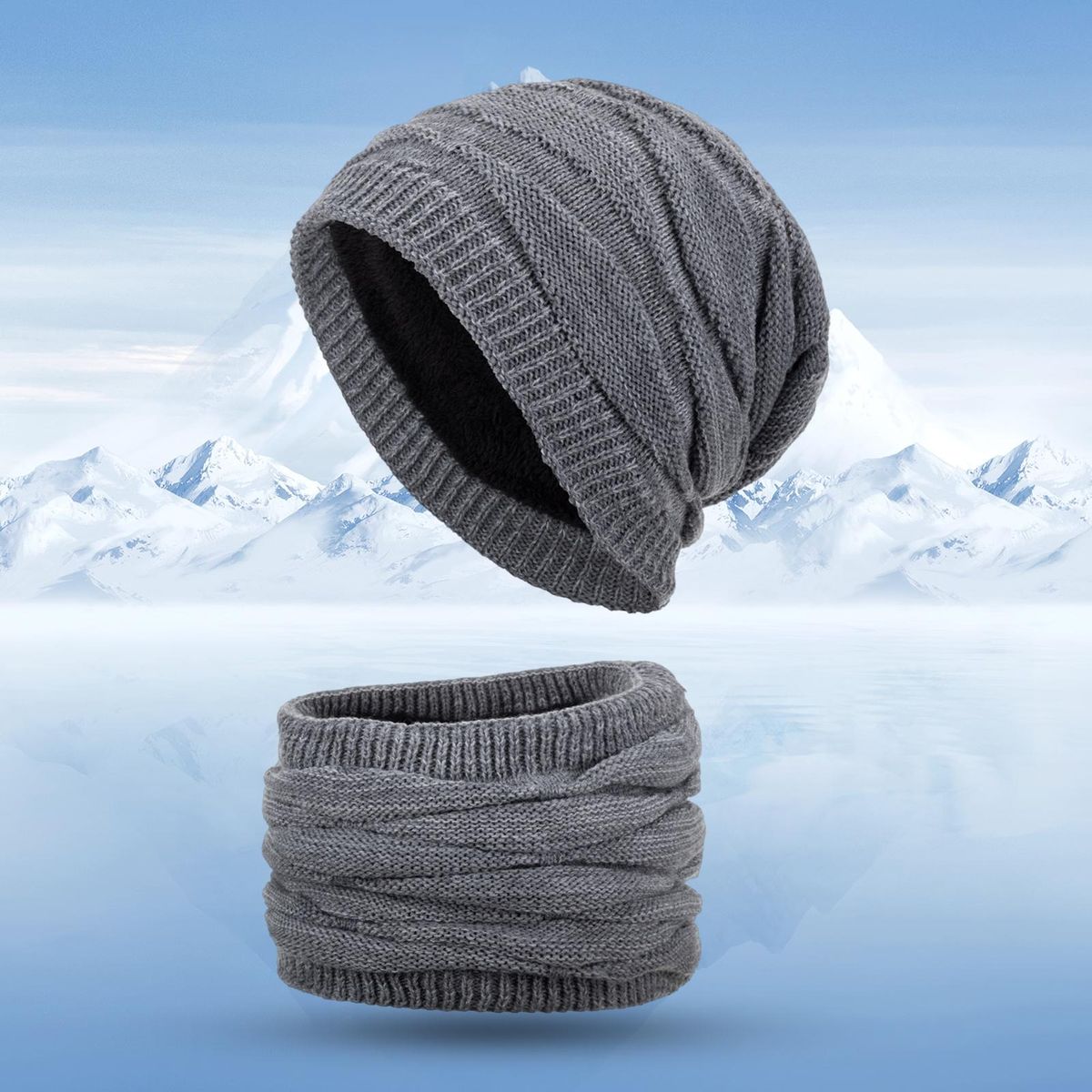 Buy 2PcsSet Knit Hat Neck Warmer Fall Winter Female Male Knit Cap Scarf Kit Grey in Nigeria