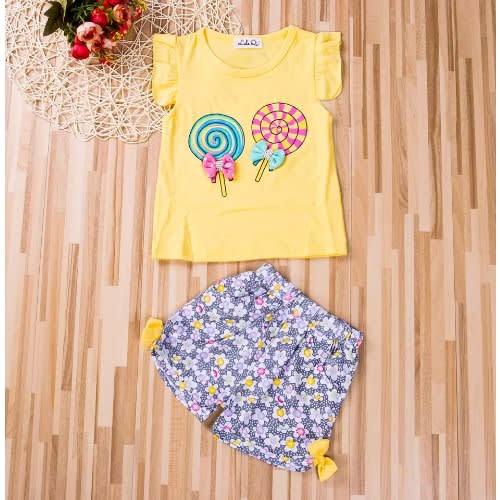 Buy 2Piece Girl's Lollypop Bow Top And Bowknot Short Set- Yellow in Nigeria