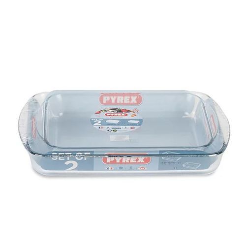 Kit out your kitchen in style with this Pyrex two-piece roasting set. These stylish glass roasters come in two sizes, catering for any meal, big or small: 35 x 23 cm and 40 x 28 cm. These classic roasting dishes are dishwasher safe for your convenience and are highly resistant to shocks and scratches. These great value glass roasters are perfect for whipping up roast vegetables, lasagna, shepherd's pie or pasta bakes. Made from heat-resistant glass, this roaster is ideal for serving straight to the table and is dishwasher safe for quick and easy clean-up.