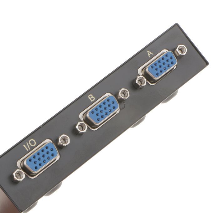 This is a compact and convenient VGA bi-directional manual switch. It allows 2 hosts to share a VGA display, or switches 1 host between two displays, or projector.