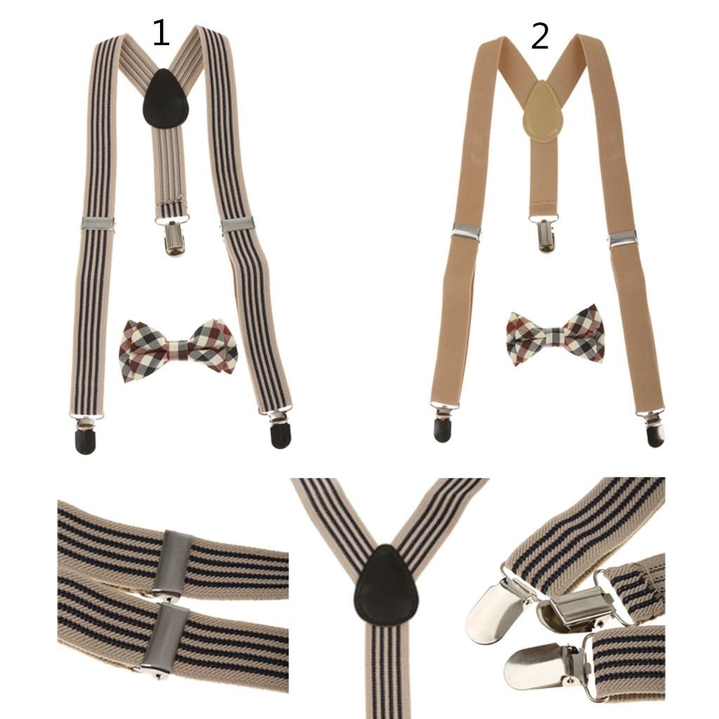Kid Bowtie Suspenders; ;Y-back Suspender;Plaid Necktie;Adjustable Suspenders;Elastic ; Strap; Belt;Universal Suspenders;Plaid Bowtie Suspender Set