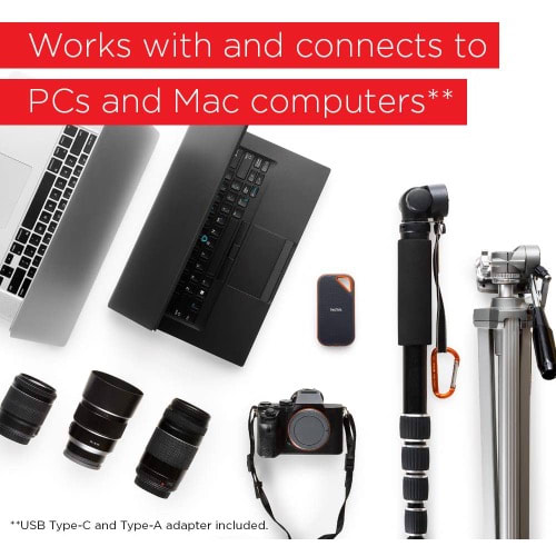 USB Type-C + USB-A CompatibleDesigned to work with both Windows and Mac, the SanDisk Extreme Portable SSD is equipped with a USB 3.1 Type-C connector and also includes a USB Type-C to Type-C cable and a Type-C to Type-A adapter, meaning it will work with the PCs and Macs of today, tomorrow and yesterday.