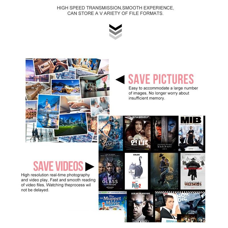 Standard USB interface, can be used for all computers, for the computer to provide secure data storage, superior storage performance, plug and play, convenient, fast and fast. Can be used for computer storage video, music, photos, file data, to achieve mobile phone and computer to share data, safe and convenien
