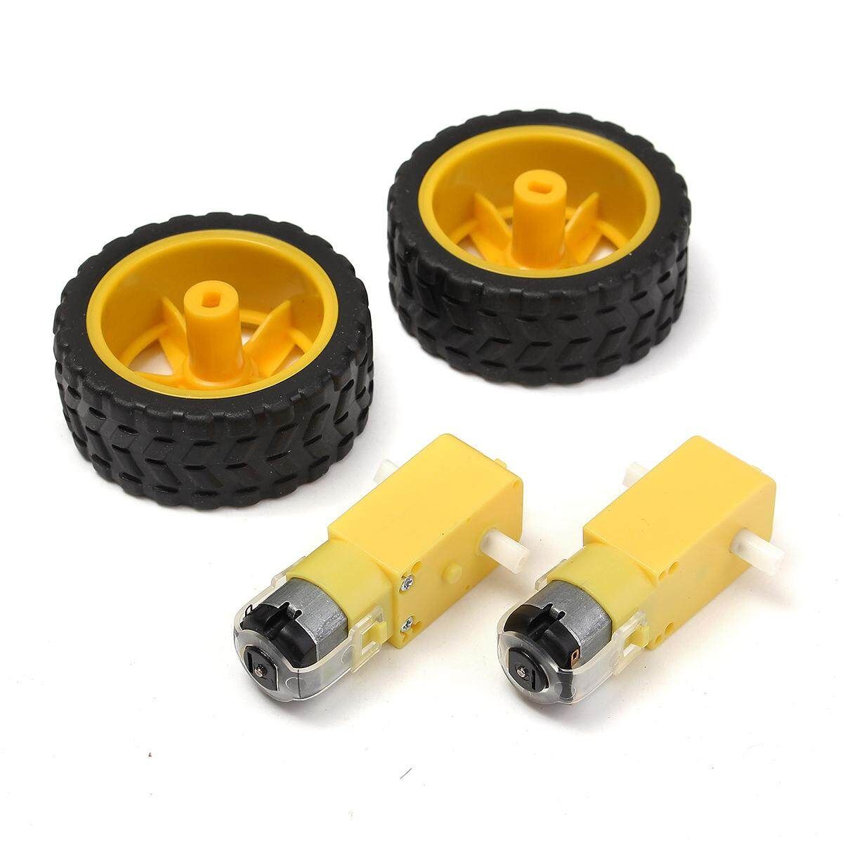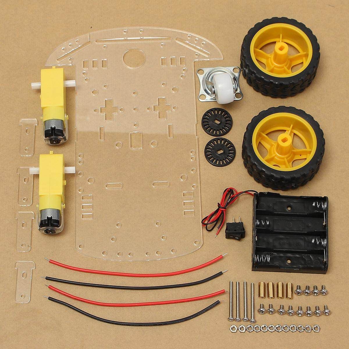 1 x Car Chassis 2x Wheel 1 x Universal Wheel 2 x Gear Motor (1:48) 2 x Speed Encoder 4 x Fasteners 4 x Cable (red and black) 4 x "T"mode Fixed Motor Bracket 1 x Button 1 x Box 12x Screw 12x Nut