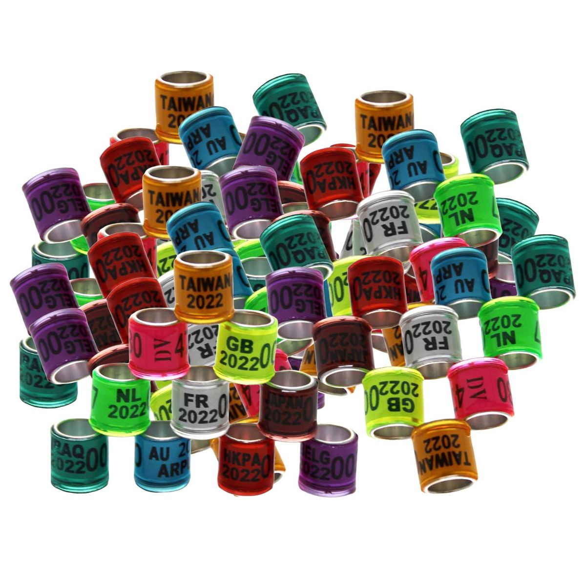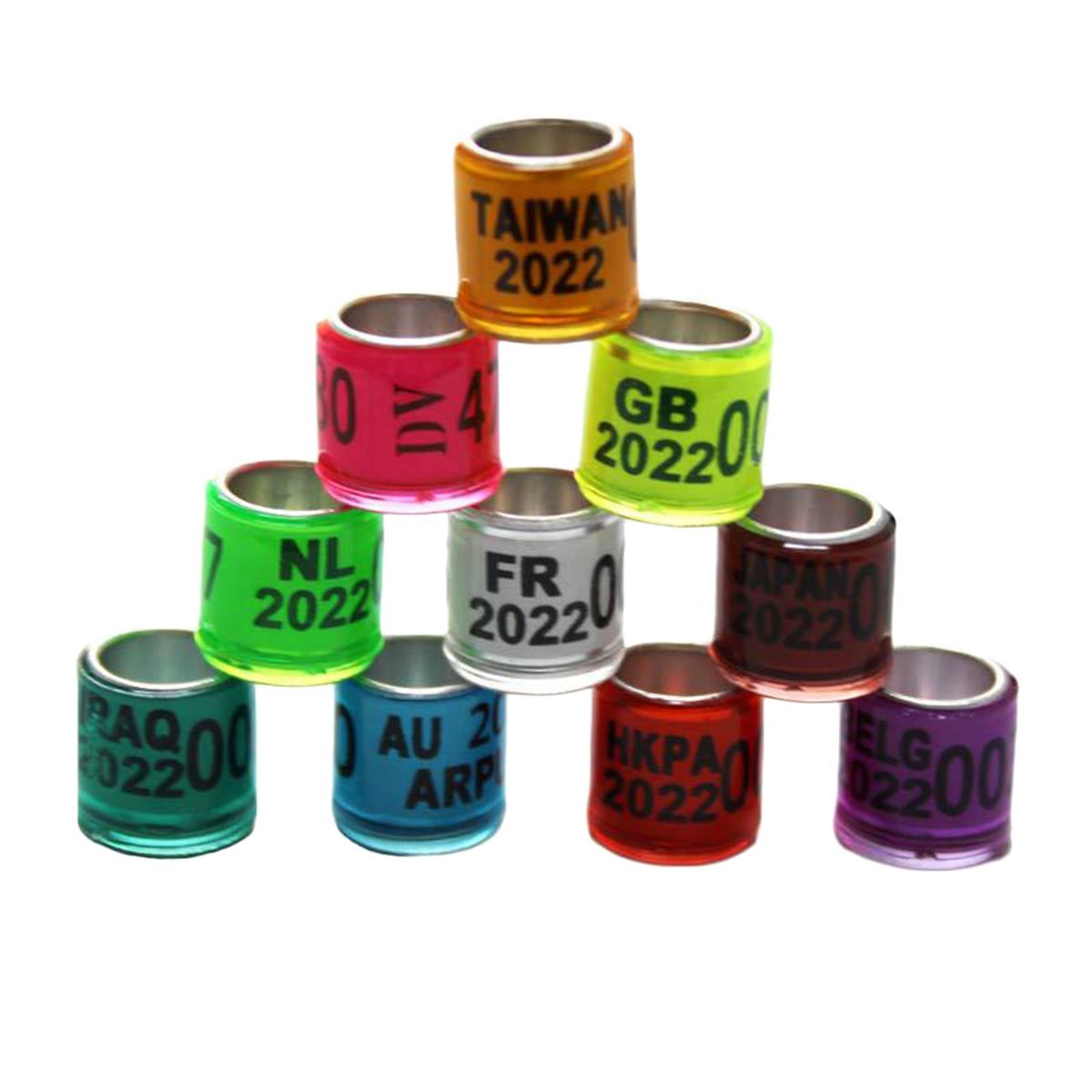Each ring has a number mark and place name, which will help you identify the pigeon.Simple ring design makes it easy to buckle up and remove from your poultry.Adopting high quality material, which is durable, non-toxic and without deformation for long term use.SIZE:Inner Diameter(min):Approx. 8mm/0.4inch.Outer Diameter:Approx. 11mm/0.43 Inch.Height:Approx. 11mm/0.43 InchPink ring is , Red ring is Hong kong, Blue ring is US, Yellow ring is UK, White ring is France, Orange Ring is Taiwai.