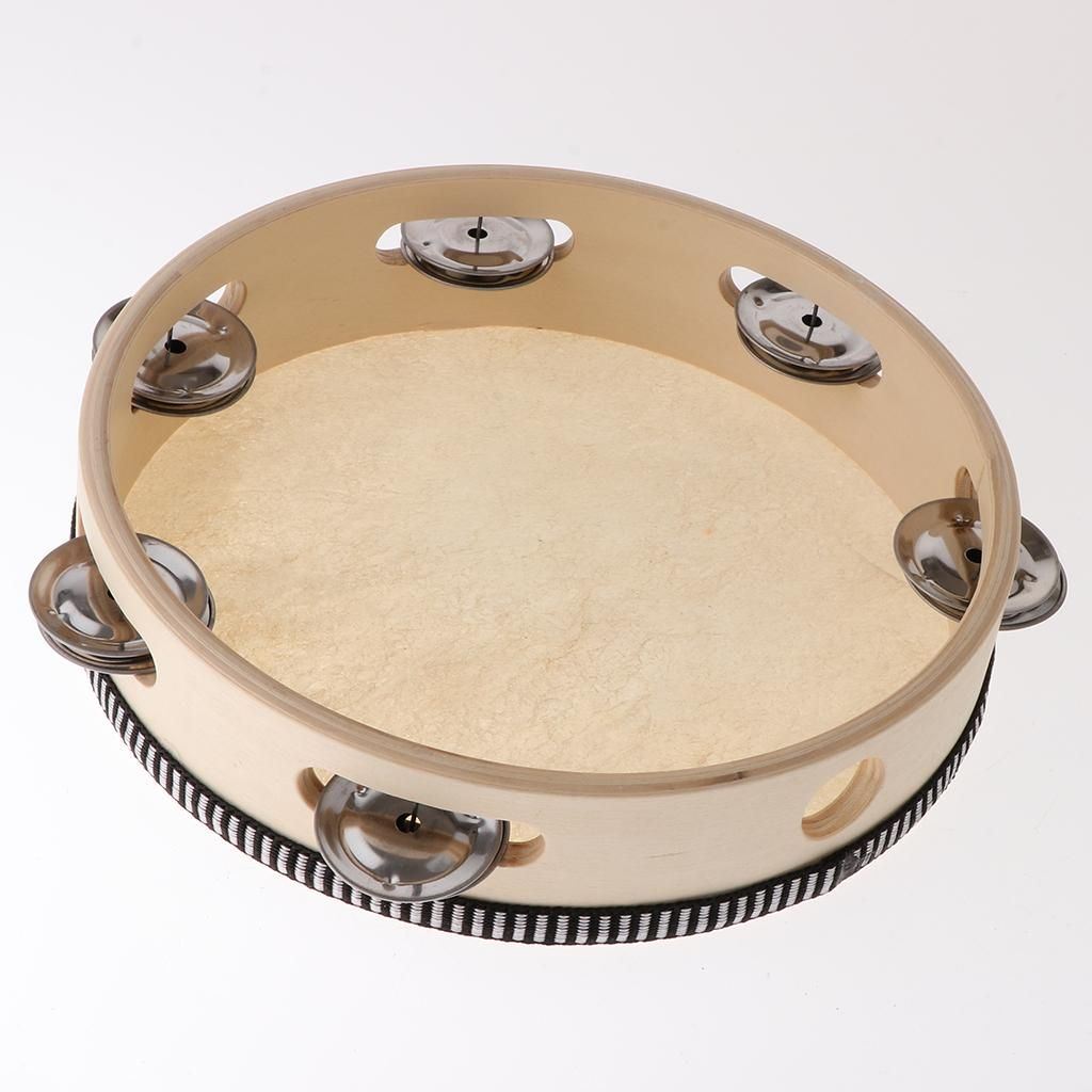 Wooden Hand Held Tambourine with Metal Single Row for Kids Musical Toys.