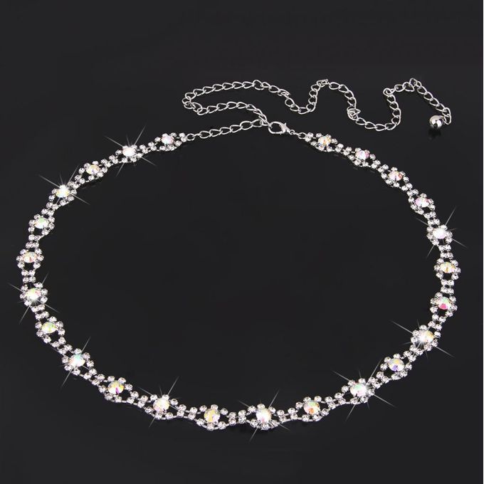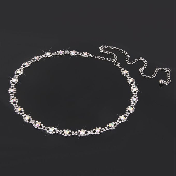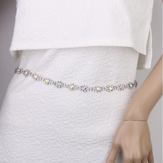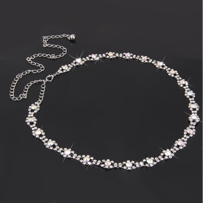 2x AB Color Crystal Alloy Flower Beads Ladies Waist Chain/Charm Belt