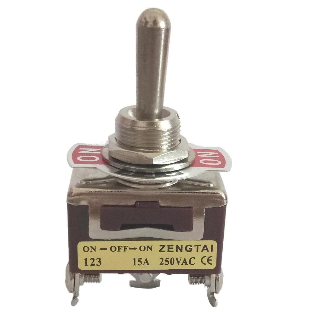 Product name: Toggle switch; Type: SPDT (on/ off/ on), MomentaryPin Number : 3 Pins;Position: 3; mounting Hole diameter: 12 mm / 0. 456 inchMain body Size: 29*16*56mmMaterial: metal, plastic;Rated Voltage & Current : AC 250V, 15A