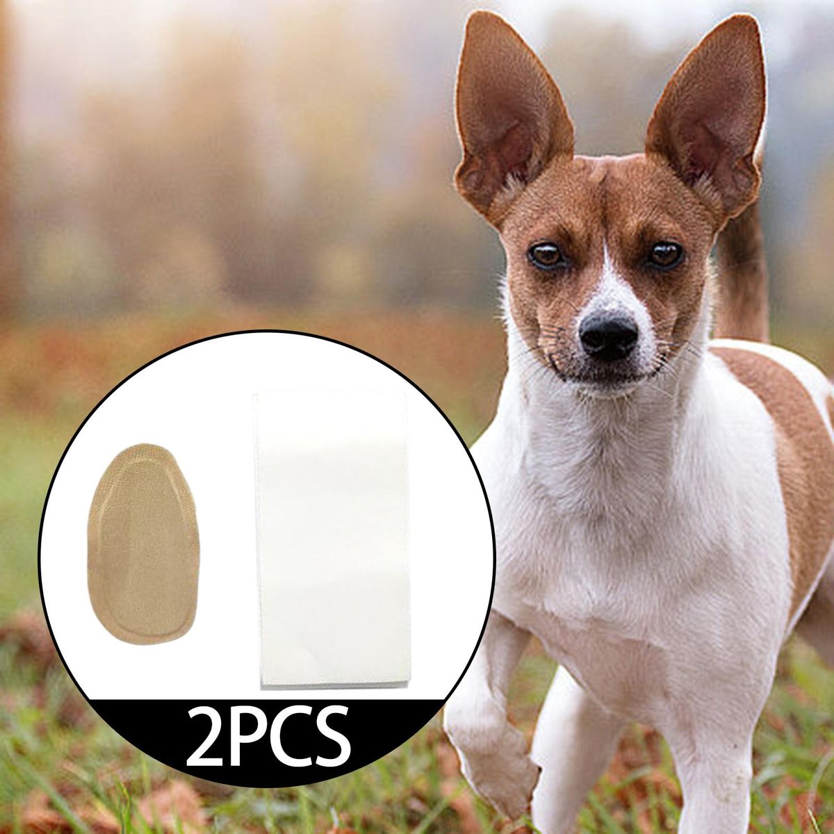 【Usage】: First, clean the inner side of the pet ears, and sticker on the inner side of the ear, then use sticky tape to fix the ear stickers into a cylindrical shape.