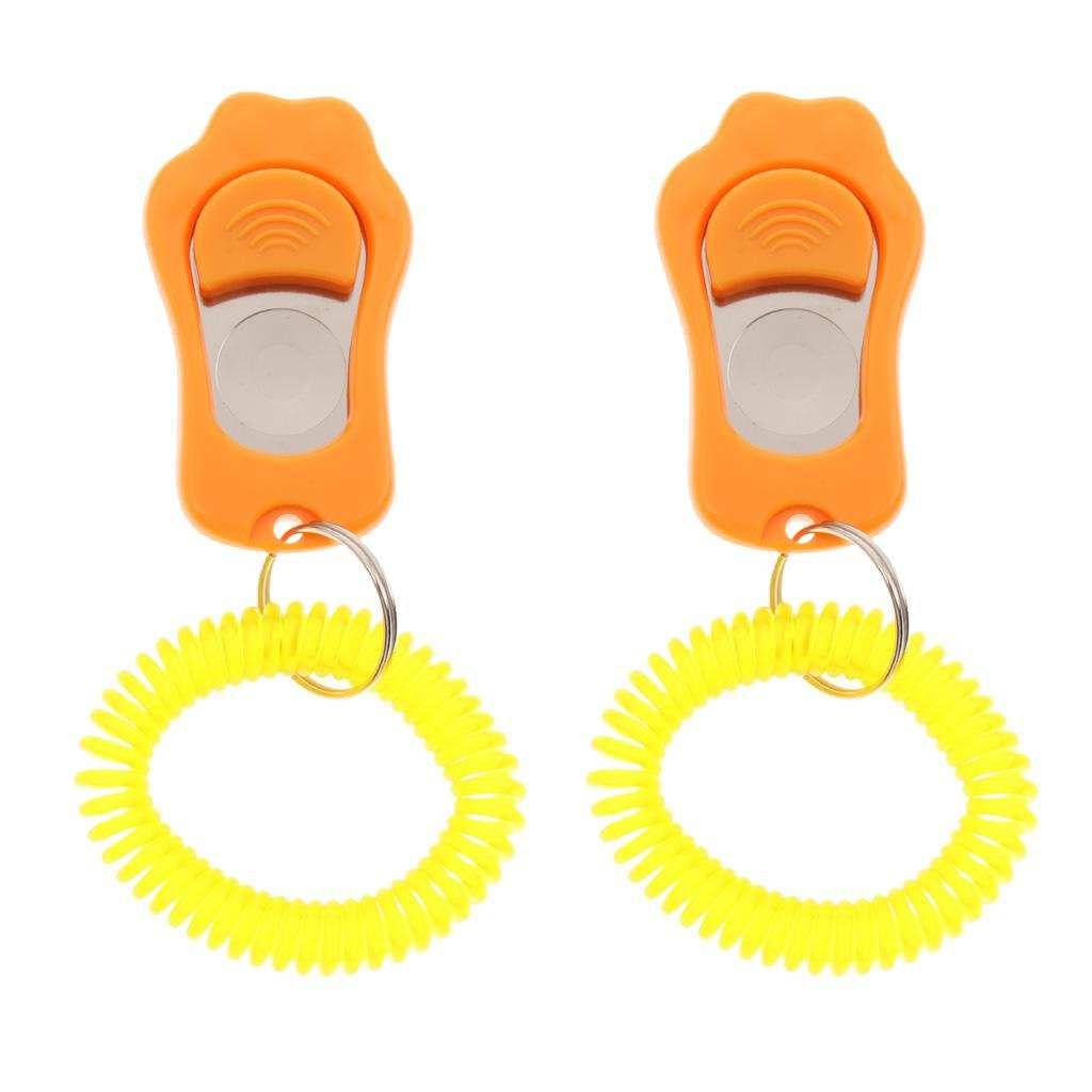 2 pack pet dog big button clickers with wrist strap.Made of PC material, high-grade, scratch resistant.Clicker training is a form of positive training, click and train.Good training tool for your pets.By pressing the button, this clicker will make distinct and recognizable sound, this is the pleasure way to communicate with pets according to science records.Develop your relationship with your pets through teaching and training them.Three Gears adjustable,first gear low pitch, second tone, third high pitch.