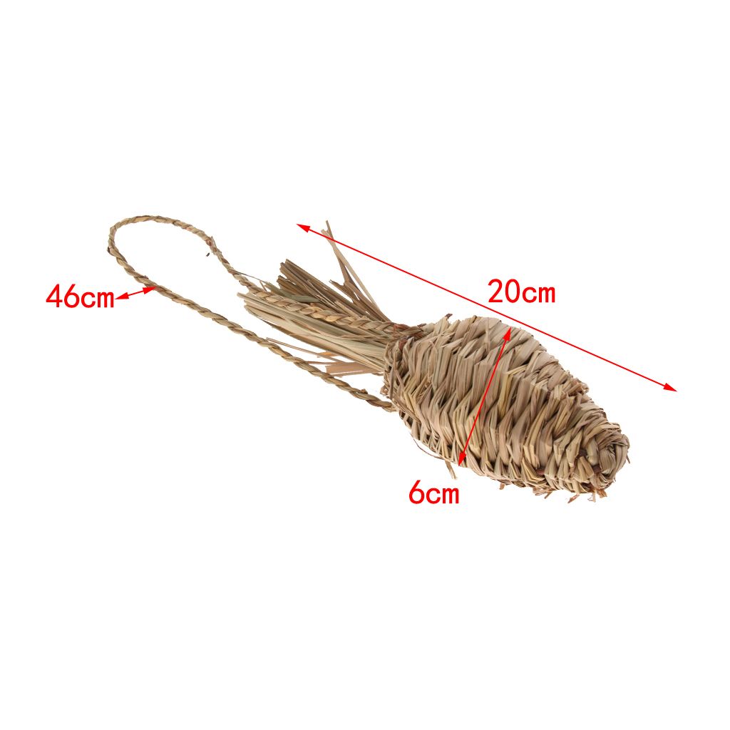 and high quality;Parrot suplies bite chew toys natural grass carrot radish gnawing toys;Made of natural grass material for safe using; Help birds build up an active lifestyle;Designed for your little friends to play and chew, easy install in the cage; Suitable for bird, hamster, rabbit, mouse, chinchilla, etc.Length: approx. 20cm/7.87inch, diameter: approx. 6cm/2.36inch, chain length: approx. 46cm/18.11inch