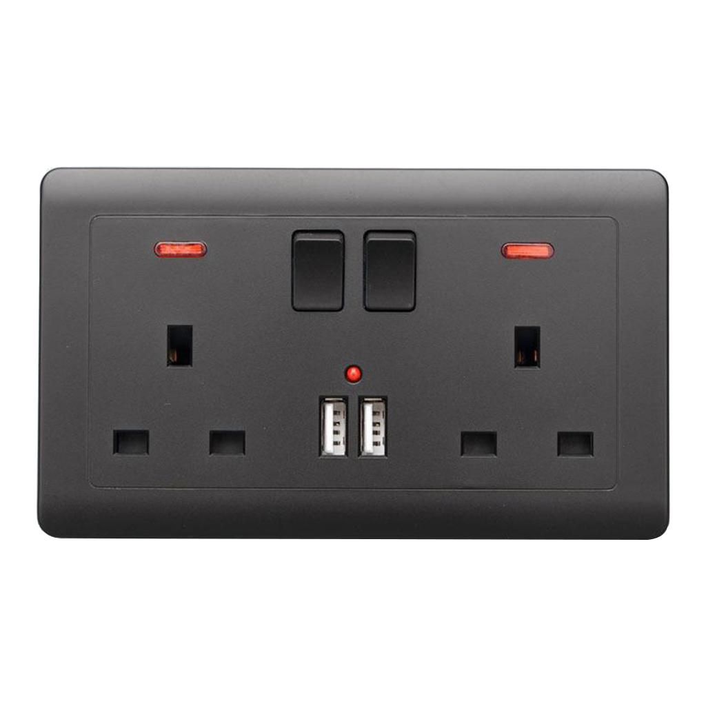 wall uk plug socket;double wall uk plug socket 2 Gang 13A;Double Electric Switched Socket with USB Port;Double Wall Switch Socket 2 USB Charger Ports UK;USB Charger Port Outlets Socket ;Double Wall Switch Socket 13A 2 gang 2 USB Ports