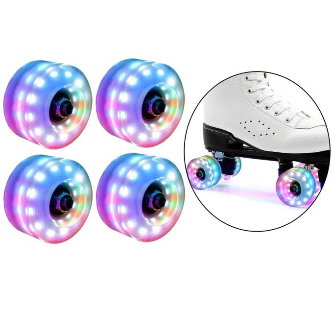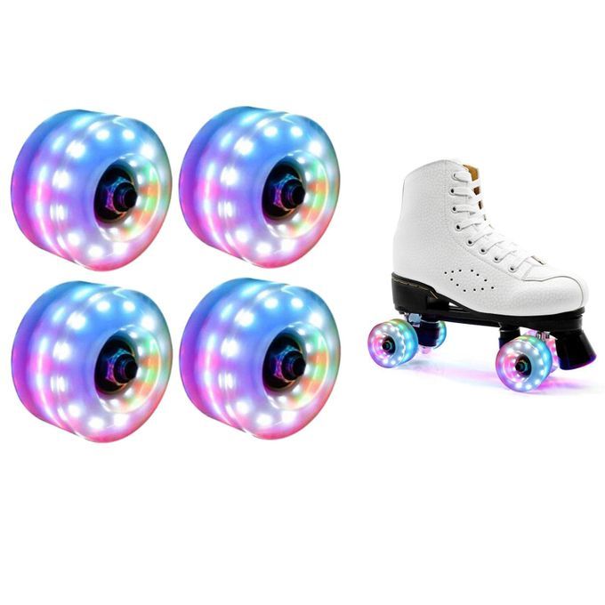 2xLuminous Quad Roller Skate Wheels Light Up LED Bearings Street