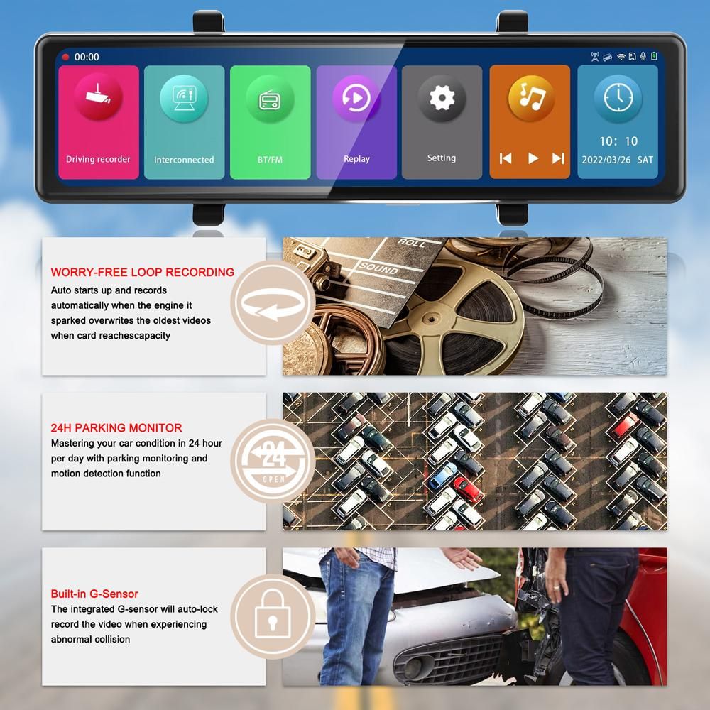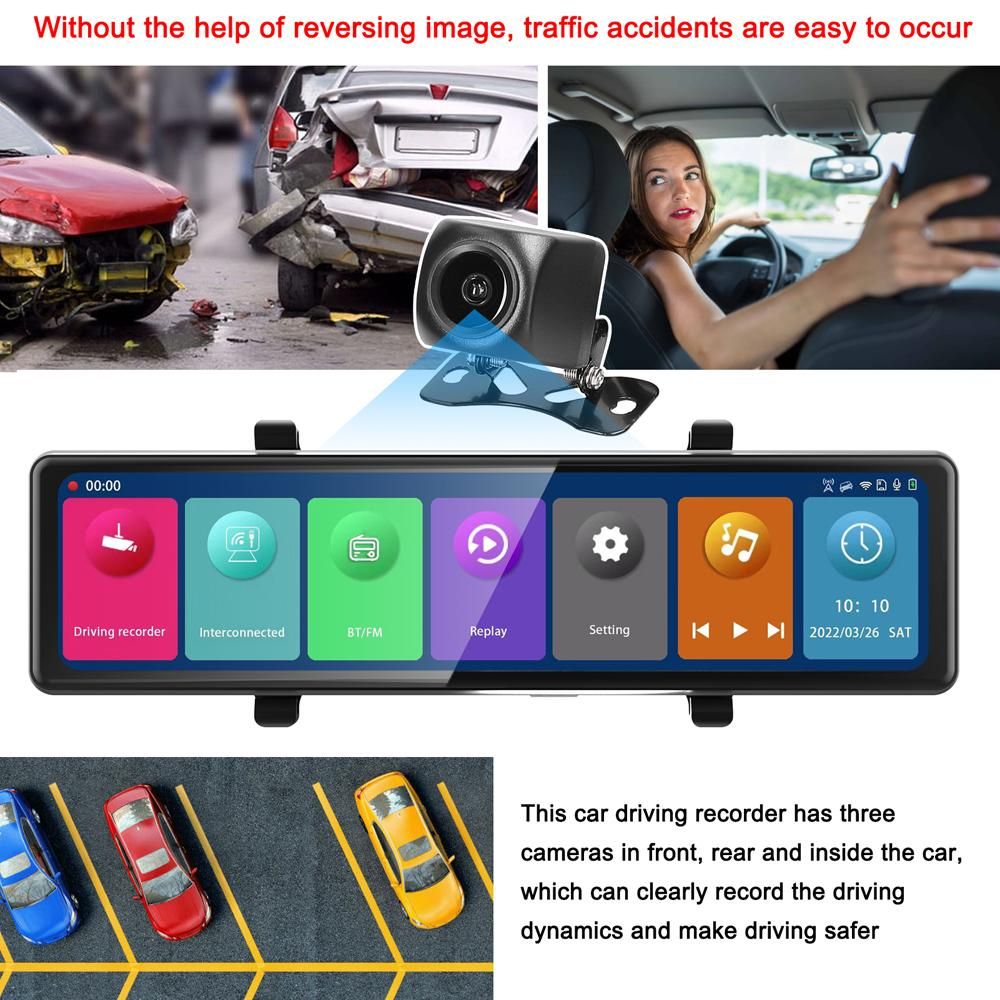 Buy 3 Cameras Dash Cam 12in 2.5K Clear Car Rearview Mirror BT Car Video Recording Camcorder Touched Screen Car Camera Recorder Carplay Auto Driving Recorder in Nigeria