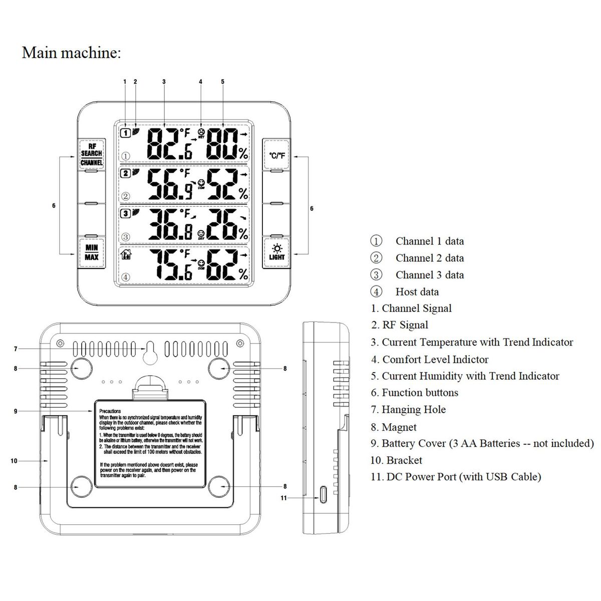 Buy 3 Channel Digital Indoor Outdoor Thermohygrometer with Remote Sensor 328ft/ 100m Backlight Thermometer Humidity Meter Comfortable Level Temperature Humidity Monitor with 3 Transmitters for Home Office Greenhouse Warehouse in Nigeria