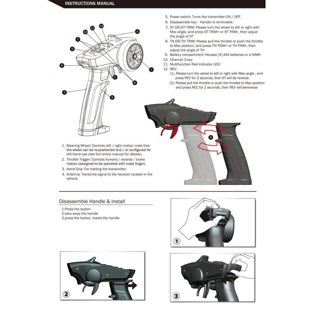 Steering/throttle adjustment;steering/throttle servo ;steering/throttle dual-arte adjustment.