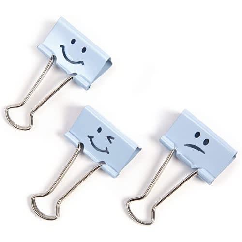 Add a little fun to your organising with our powder blue Emoji fold back clips. Ideal for holding both paper and card, these clips hold documents tightly and securely and can be removed and reused time and time again without damaging the paper.