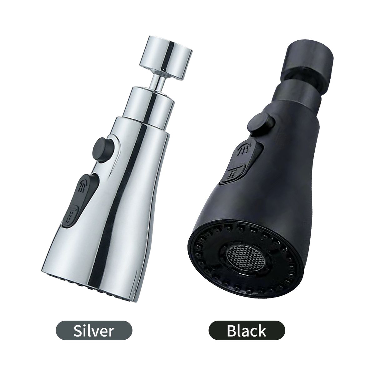The three-function faucet sprayer head increases spray velocity, reduces splash, and saves water, perfect for sink faucets, kitchen faucets, bathroom faucets, etc. The standard 1/2" connector head is fit for most kitchen faucets with 22mm male thread.