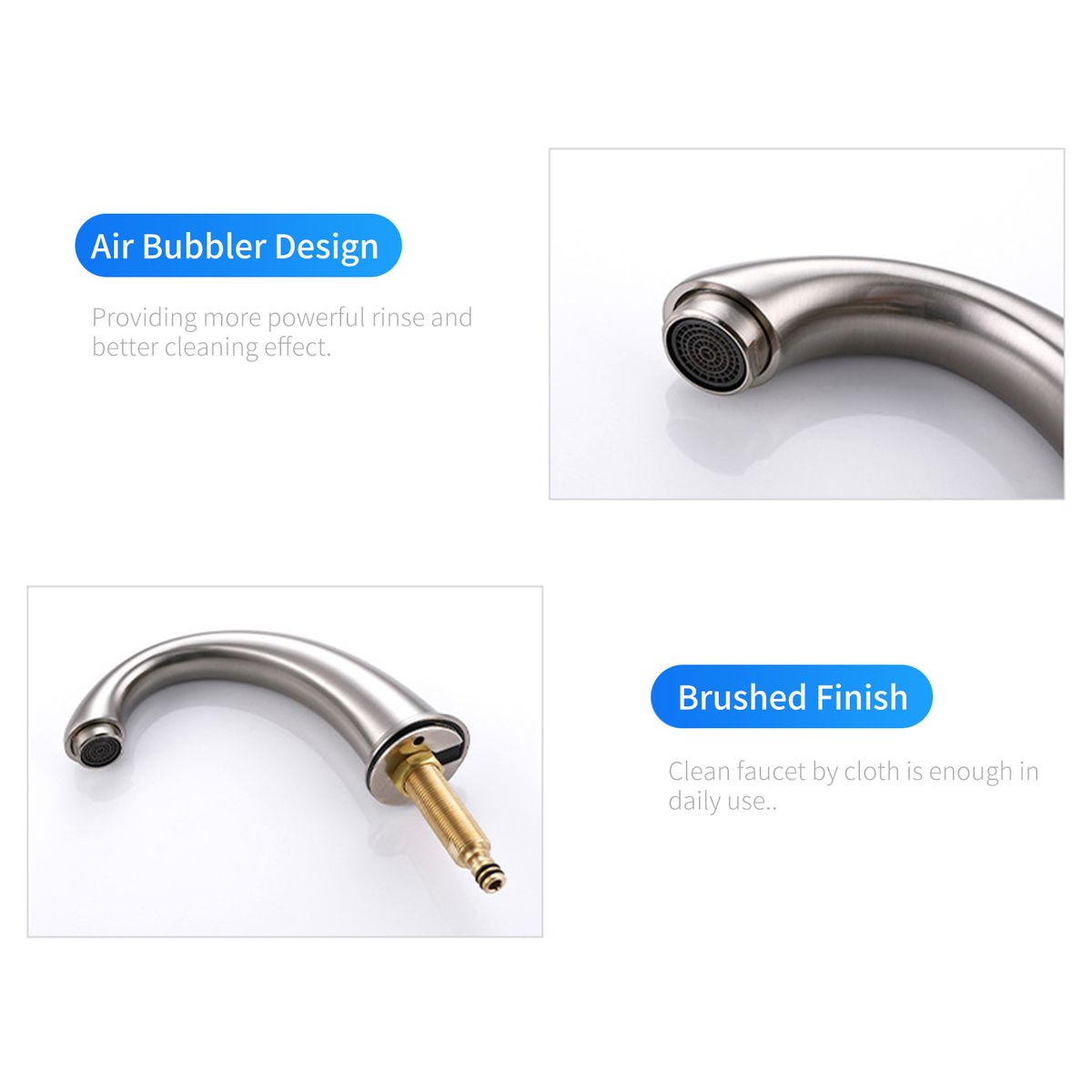 [Brushed Finish]The rotatable kitchen faucet has superior corrosion amp; a rust-resistant finish prevents dirt from sticking to the faucet surface, clean faucet by cloth is enough in daily use.